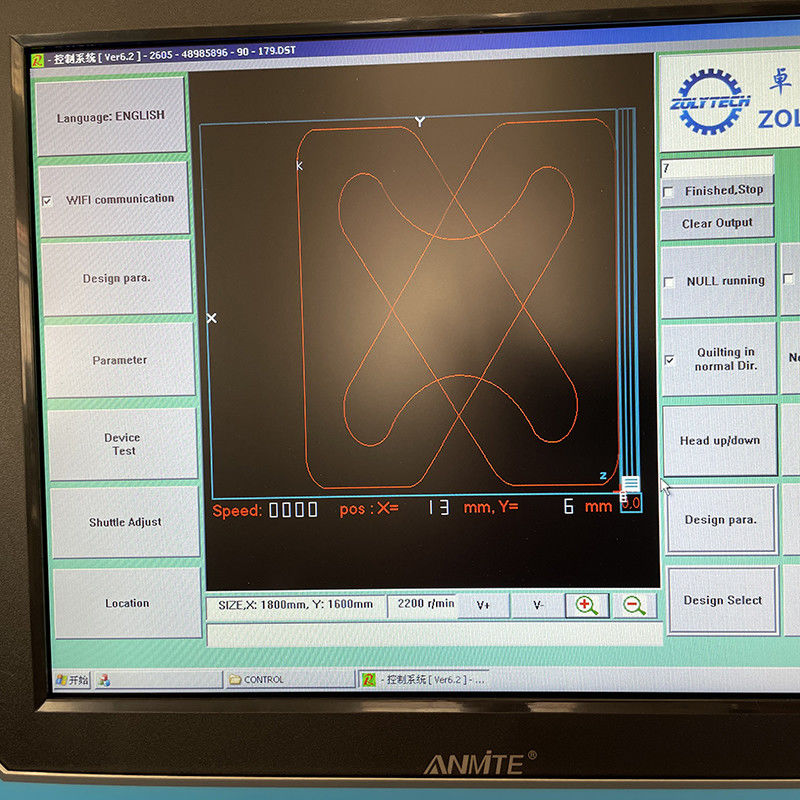 7. Shuttle putar berukuran besar, quilting rentang acak. Perbaikan quilting hanya dengan mengklik layar sentuh.